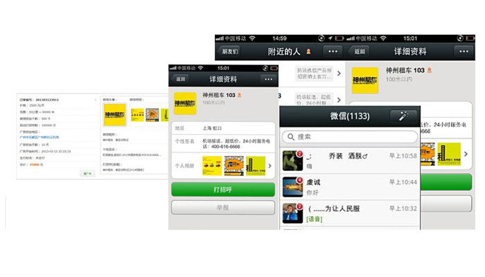 营销人员在人流最旺盛的地方后台24小时运行微信,如果“查看附近的人”使用者足够多,这个广告效果也会不断随着微信用户数量的上升,可能这个简单的签名栏也会变成会移动的“黄金广告位”。